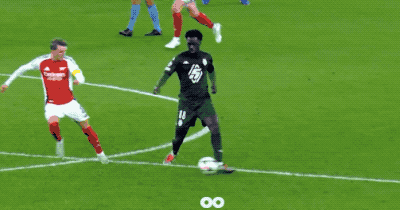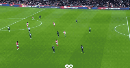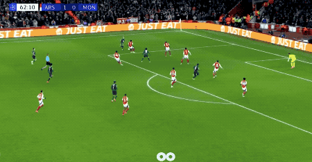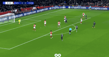 第78分钟,枪手的高位逼抢酿成了摩纳哥的传球裂缝,萨卡梅开二度。