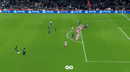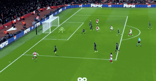 第88分钟,萨卡传中,哈弗茨门前一垫,跋扈破门,萨卡本场比赛独造3球。