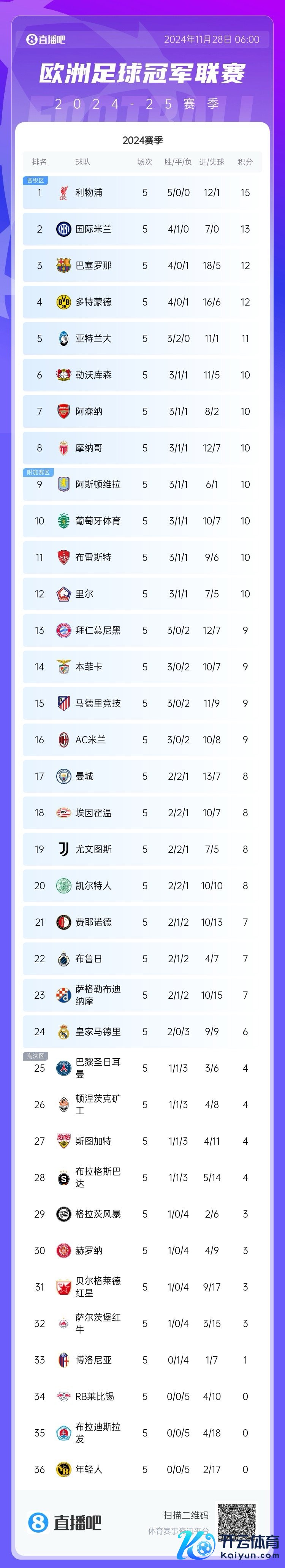 现在,皇马在欧冠积6分,仅列第24位;巴黎在欧冠积4分,仅列第25位。