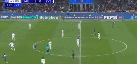 第42分钟,福法纳送出长传,莱奥单刀契机停球扣门到手!米兰1-0卓绝