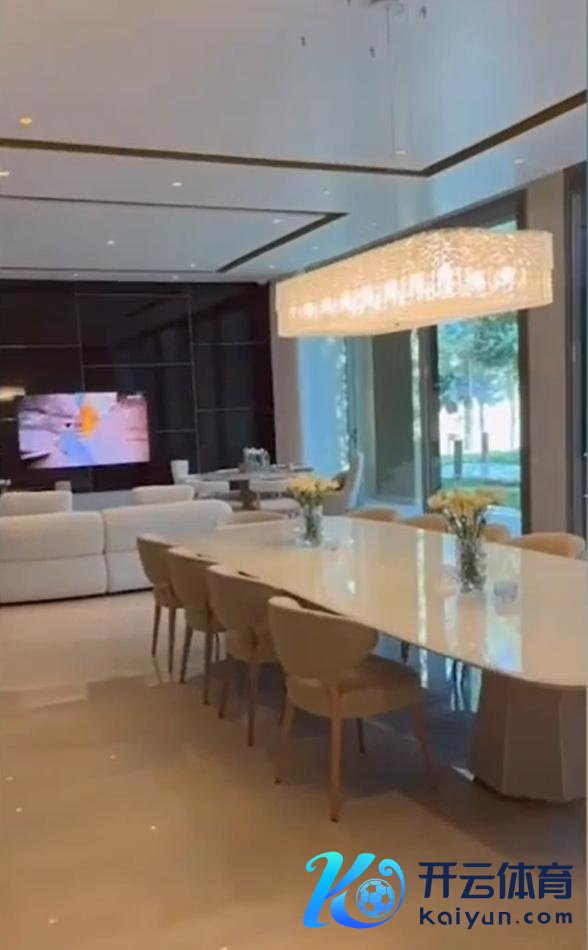 在乔治娜的视频中,她展示了屋子的3个部分,大厅被按捺成两个部分,双方齐有很大的沙发以及电视。还有一个餐厅,放弃了一张能坐10个东谈主的长桌。