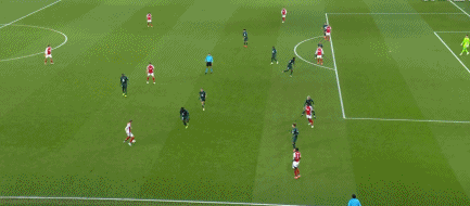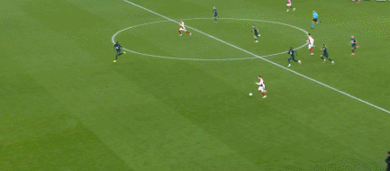 第7分钟,梅里诺传中,热苏斯包抄没能遇到皮球